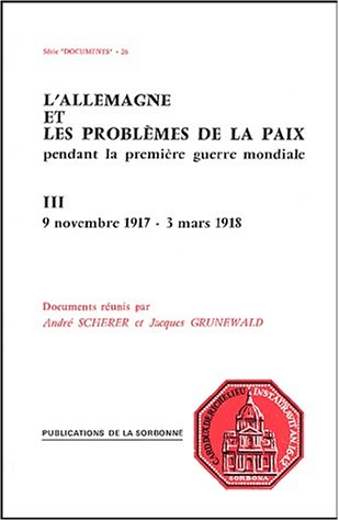 Here you will find list of PDF L'Allemagne et les problèmes de paix pendant la Première Guerre mondiale. Tome 3, 9 novembre 1917 - 3 mars 1918 Download free ebooks online for read and download. View and read PDF L'Allemagne et les problèmes de paix pendant la Première Guerre mondiale. Tome 3, 9 novembre 1917 - 3 mars 1918 ePub ... Enjoy reading free pdf L'Allemagne et les problèmes de paix pendant la Première Guerre mondiale. Tome 3, 9 novembre 1917 - 3 mars 1918 PDF Download ...