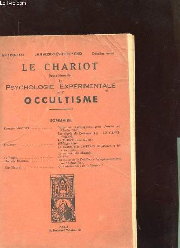 Read Le chariot. revue mensuelle psychologie experimentale et d'occultisme. n°108-109. influences astrologiques pour janvier et fevrier. les degres du zodiaque la capricorne. le tarot: les six. la chance a la loterie. le courrier des abonnes. la vie Online Download PDF Le chariot. revue mensuelle psychologie experimentale et d'occultisme. n°108-109. influences astrologiques pour janvier et fevrier. les degres du zodiaque la capricorne. le tarot: les six. la chance a la loterie. le courrier des abonnes. la vie Kindle or read online books in PDF, EPUB, Tuebl, and Mobi Format. Click Download or Read Online button to get second ...